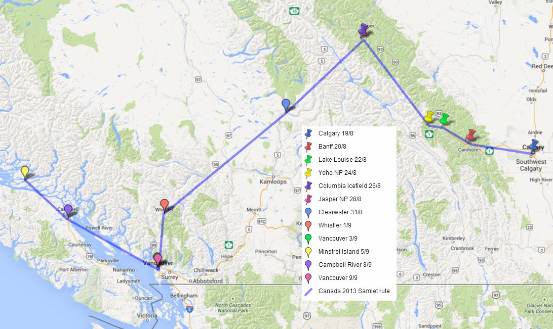Først vores (det vil sige Connies, Thyges, Kirstens og Kims) Canada-tur i overblik: